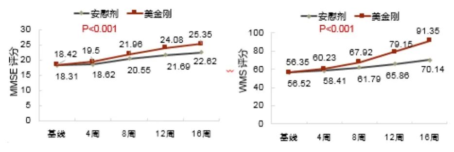 癫痫病理状态下细胞内谷氨酸含量过高,过度激活NMDA受体介导的Ca2+内流导致神经兴奋性毒性10。美金刚可能通过抑制NMDA受体的神经兴奋毒性具有抗癫痫作用,其癫痫相关研究受到关注11。一项随机、双盲、平行分组、安慰剂对照研究显示,美金刚可显著改善癫痫患者认知(见图1)12。