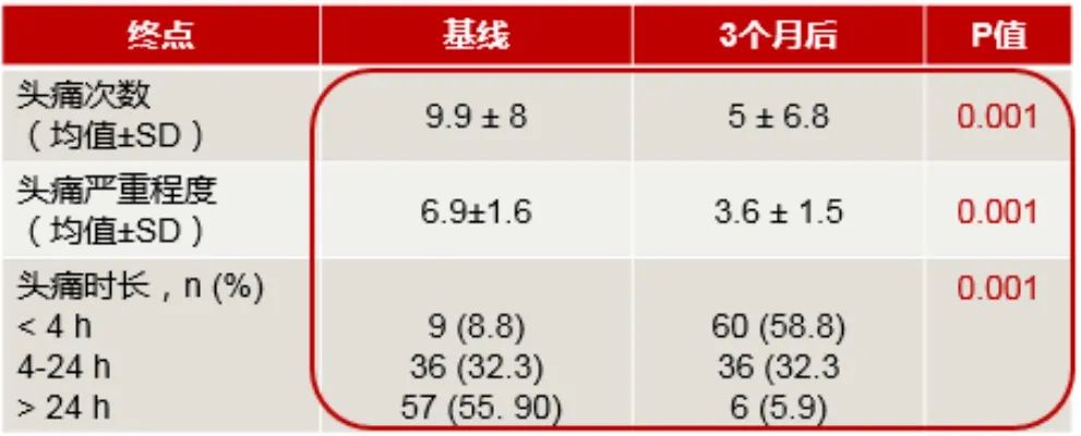 表2 美金刚显著降低偏头痛发作频率、持续时间和严重程度