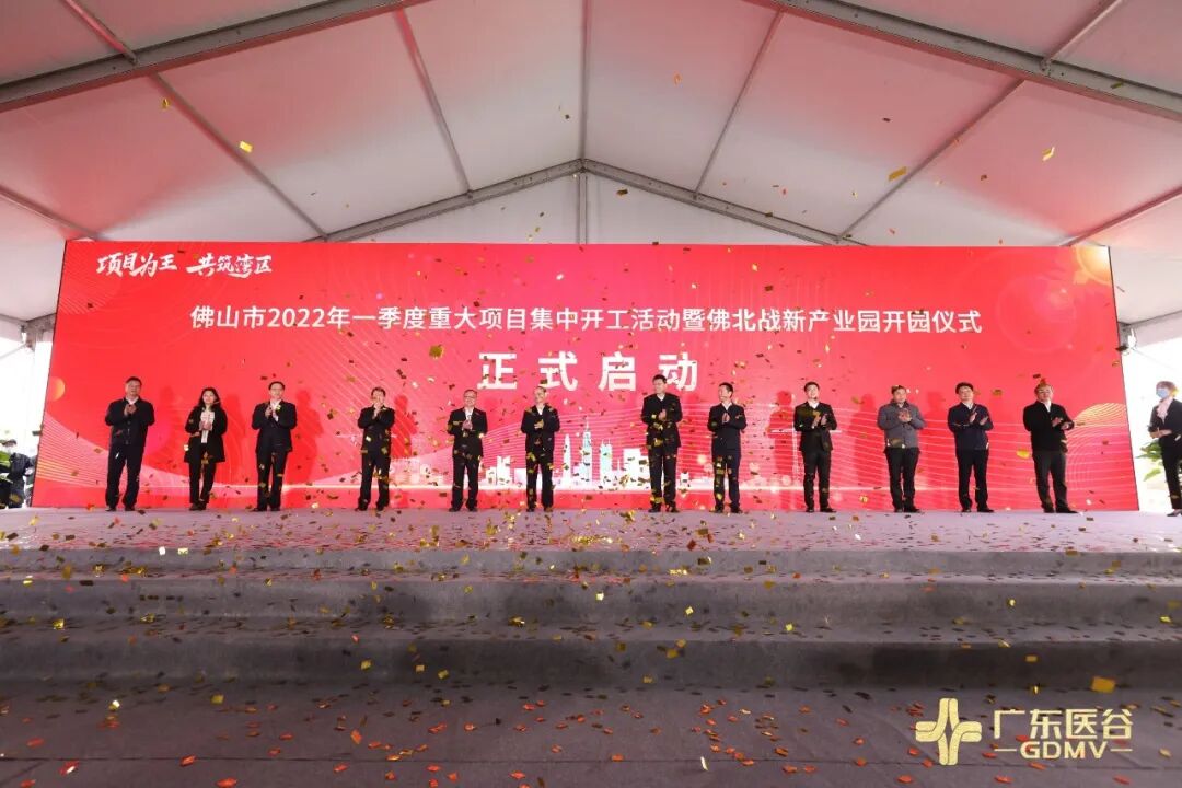 2月8日,佛山市2022年一季度重大项目集中开工活动暨佛北战新产业园开园仪式在佛山三水隆重举行,活动由郑海涛常务副市长主持。广东医谷•云东海生命科学园现场正式打桩动工,标志着广东医谷打造医疗产业集群的目标再上新台阶。