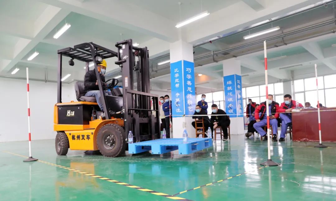 在叉车司机赛场,参赛选手叉取四角立有水瓶的托盘,巧绕障碍物并穿过窄门,到达终点后再倒车返回起点,中途要把握平衡,不让水瓶倾倒……比赛展示出了叉车工人“稳、准、快、巧”的技能和良好的心理素质。