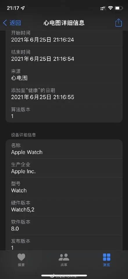 有网友 @海涛 RUNner 投稿称,自己的 Apple Watch 5 升级到 watchOS 8 Beta 2 后可以正常使用心电图 ECG 功能了。