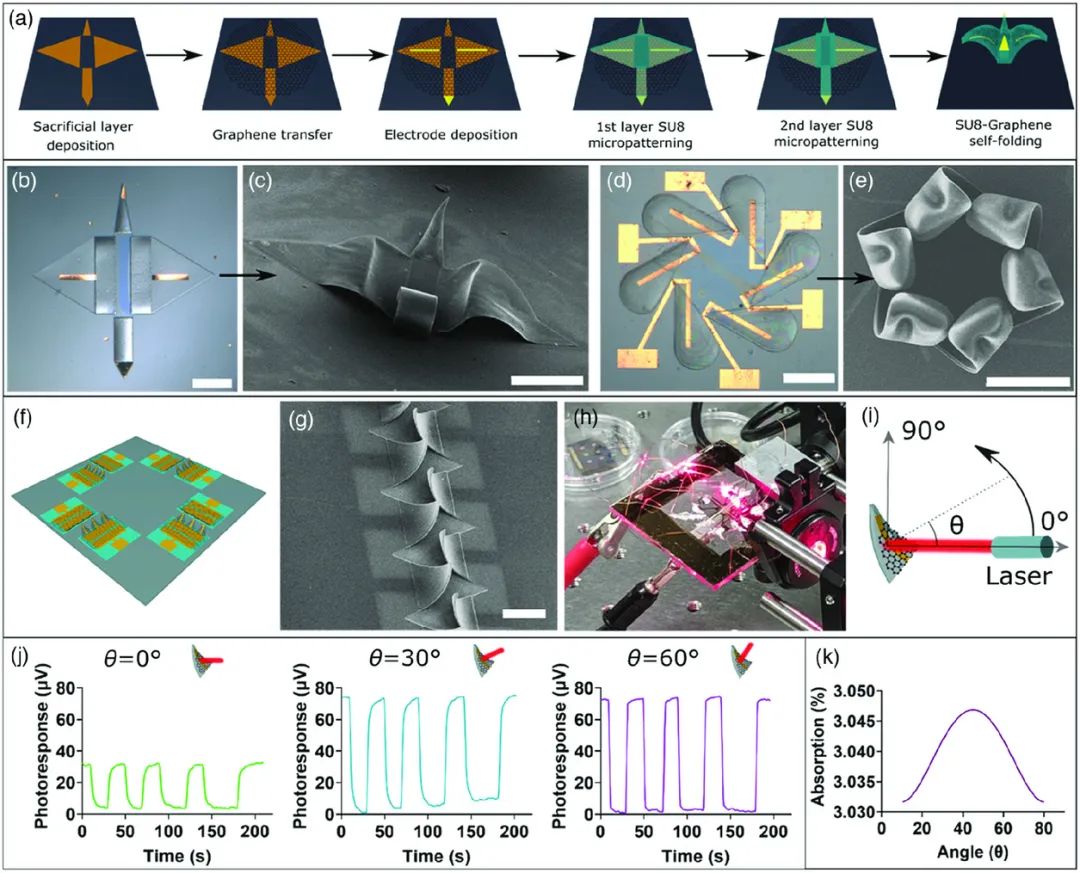 ▲图|石墨烯三维自折叠结构和光电信号探测(来源:Advanced Intelligent Systems)