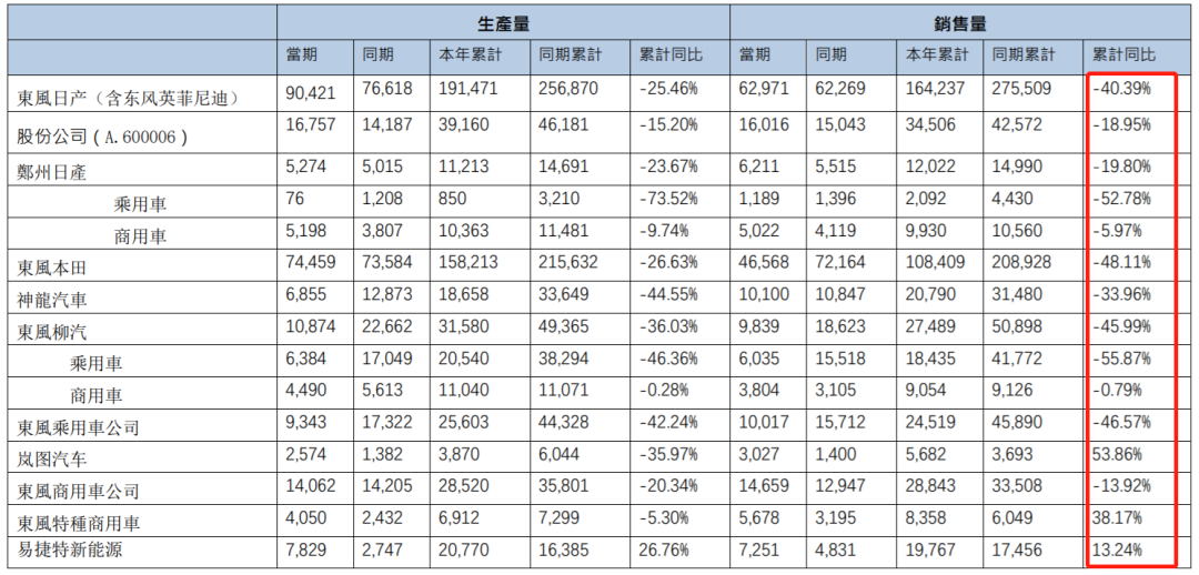 其中东风日产同比下滑40.39%;郑州日产同比下滑19.8%;东风本田同比下滑48.11%;东风乘用车公司销量下滑46.57%;雪铁龙C6所属的神龙汽车,也同比下滑了33.96%。