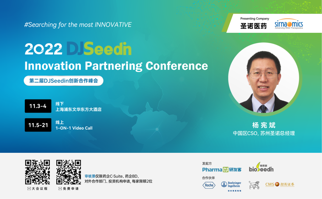 2022年11月3-4日,第二届DJSeedin创新合作峰会将正式拉开帷幕。现场将超过60家公司现场路演,分为上市公司路演专场,临床阶段公司专场、早期创新技术公司专场和Innovation Incubate专场,为大家带来企业最新发展动向、技术平台研发进展和临床数据汇报。
