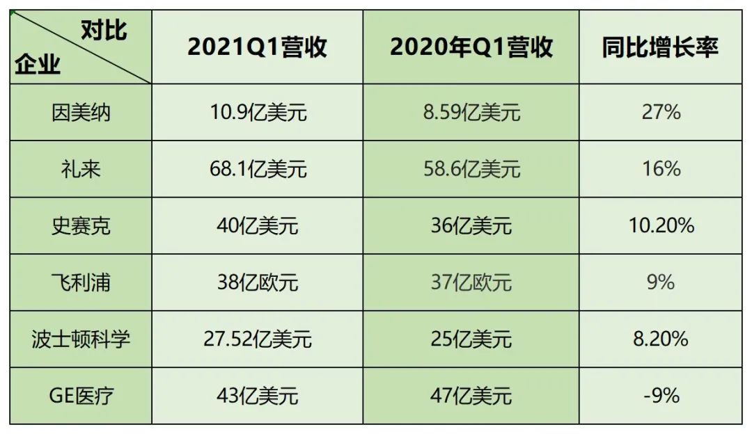 4月底,史赛克、波科、飞利浦等全球知名企业相继披露2021年第一季度财报。在全球新冠疫情形势依旧严峻的情况,这些企业中的大多数都实现了营收增长,其中,因美纳在一季度的增幅高达27%!此外,礼来、史赛克、飞利浦、波科等企业均实现了不同程度的收入增长。