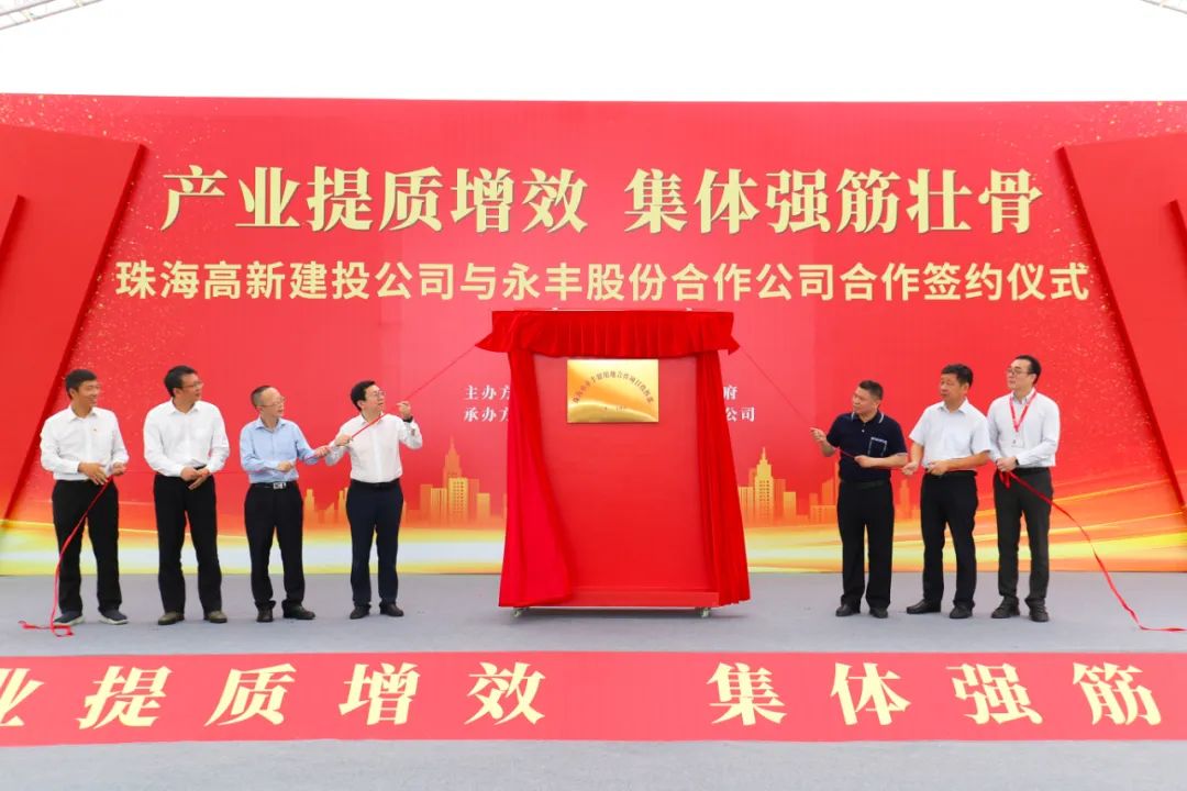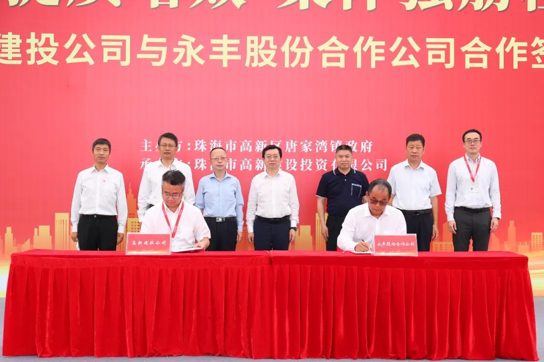 在王小彬、王建灵、王爱民、薛飞、周火根以及唐家湾镇党委书记李清涛、高新建投公司董事长何健照的共同见证下,高新建投公司总经理潘峰与永丰股份公司董事长林顺有签署高新建投与永丰股份合作公司的合作协议,并为“珠海市永丰留用地合作项目指挥部”进行了揭牌。