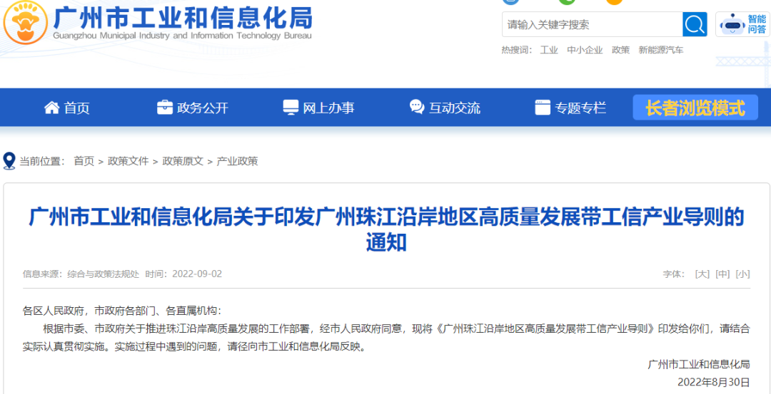 近日,广州市工业和信息化局公布《广州珠江沿岸地区高质量发展带工信产业导则》(下称“《产业导则》”),广州将在珠江沿岸重点打造12个滨江高端产业园,助力珠江沿岸地区建设粤港澳大湾区高端产业集中承载区和高质量发展带。