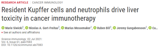 Marie Siwicki et al. Resident Kupffer cells and neutrophils drive liver toxicity in cancer immunotherapy. Science Immunology, 2021, doi:10.1126/sciimmunol.abi7083.