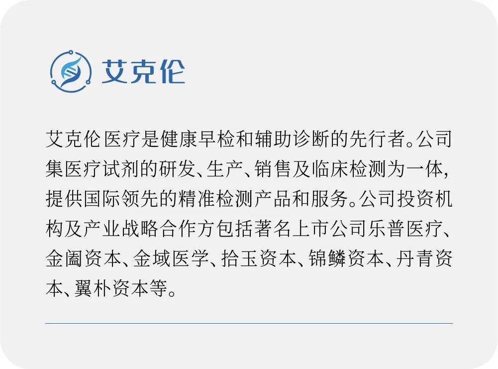 艾克伦血浆Septin9/SDC2/BCAT1基因甲基化检测试剂盒艾长卫™已获国家药品监督管理局(NMPA)III类医疗器械注册认证。艾长卫仅需通过5mL外周血即可辅助结直肠癌的筛查,大大提高了人群筛查的依从性。