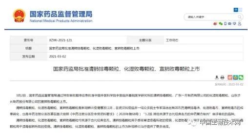 此前的3月2日,包括化湿败毒颗粒在内的“三方”获国家药监局批准上市。此次正式上市,国家中医药管理局副局长孙达表示,这是对中医药在疫情中取得的临床疗效、积累科学数据的充分认可,是中医药发展的大事和喜事。