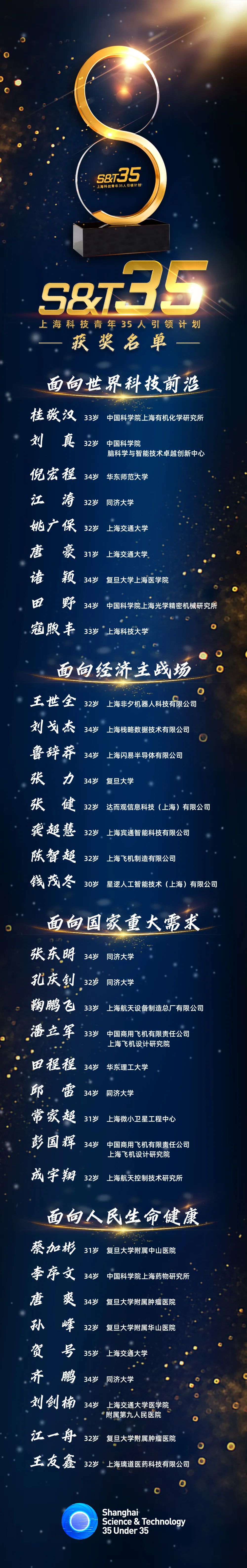 颁奖啦!“上海科技青年35人引领计划”获奖名单正式揭晓