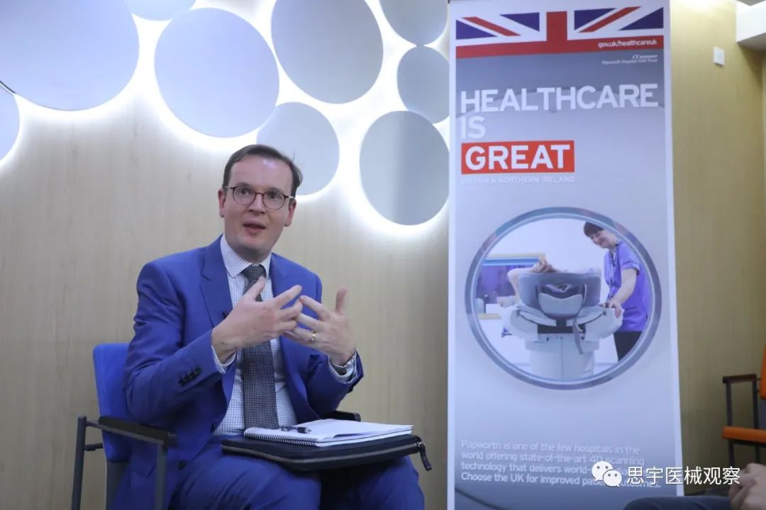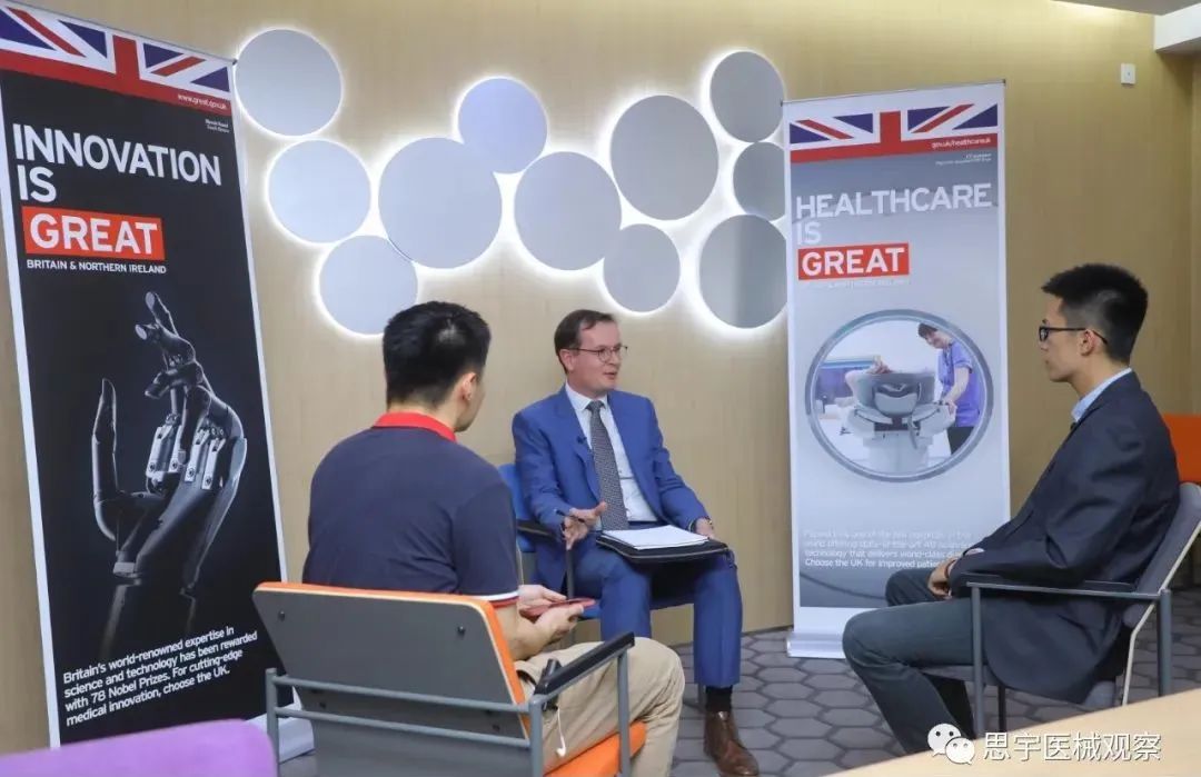 5月11日,思宇医械观察受邀参加了由英国国际贸易部(DIT)、苏格兰国际发展局(SDI)、北爱尔兰投资发展署(INI)与启迪英国共同举办的“2021年CMEF中国国际医疗器械博览会英国医疗科技创新项目路演大会”。现场,思宇医械观察很荣幸地对英国国际贸易部卫生与生命科学参赞Richard Cowin进行了专访,针对新冠疫情时代下中国和英国在医疗器械领域的潜在合作进行了探讨。参赞表示,在医疗器械领域,英国的创新技术加上中国的研发与生产能力及成熟的供应链体系,在国际上将会极具竞争力,尤其是面对当前新冠疫情的挑战,中英需要在医疗健康领域加强合作。