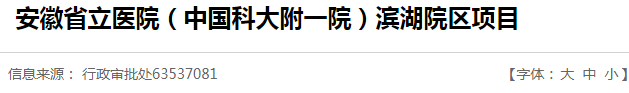 安徽省立医院(中国科大附一院)滨湖院区,本项目总建筑面积约35万平方米。包含滨湖院区和滨湖老年保健中心两个工程部分。滨湖院区位于锦绣大道与江苏路交口西南侧,滨湖老年保健中心位于锦绣大道与安徽路交口东南侧。其中安徽省立医院(中国科大附一院)滨湖院区项目,占地面积约118亩,总建筑面积约30.9万平方米,规划建设1200床综合医院及科研教学相关配套设施用房。安徽省立医院(中国科大附一院)滨湖老年保健中心项目,总建筑面积约4.1万平方米,规划建设300床病床和门诊室、综合评估室等医技用房。