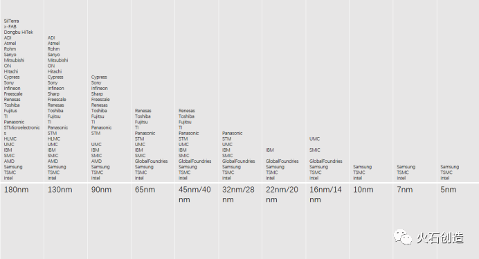 随着制程工艺的进步,玩家越来越少,现在先进制程厂商主要就是台积电和三星,还有一直在追赶的英特尔。