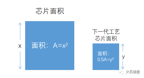 晶体管数量保持不变的情况下, 下一代新工艺的芯片面积是上一代的一半