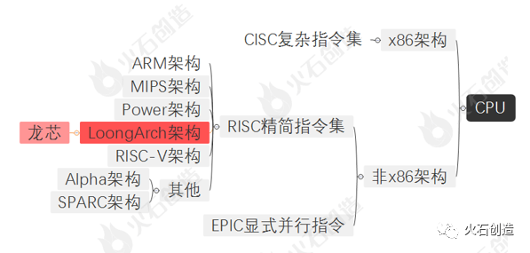 图2:CPU架构分类 (国内自主架构CPU厂商目前只有龙芯)