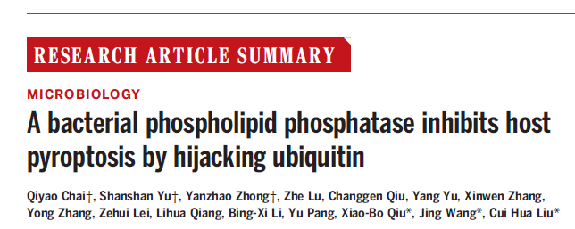 该研究揭示了Mtb利用脂磷酸酶PtpB挟持宿主泛素进而拮抗GSDMD介导的细胞焦亡的病原免疫逃逸新机制,提供了基于病原-宿主互作界面的TB治疗新思路和潜在新靶标。