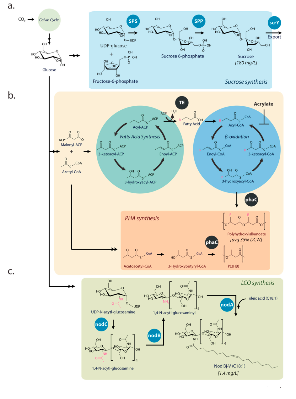 蔗糖,PHA 和脂壳聚寡糖(LCOs,lipochitooligosaccharides)。