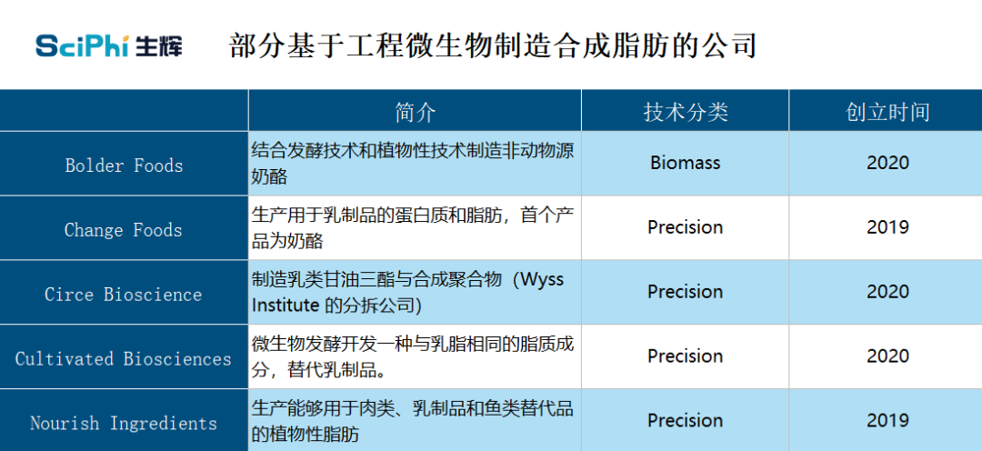 制造脂肪和肉类的合成生物学公司也在瓜分合成脂肪领域的蛋糕。