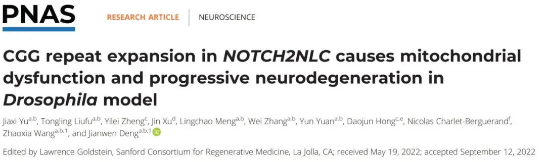 首次构建了NIID转基因果蝇模型,阐明了uN2CpolyG毒性蛋白介导线粒体功能障碍和神经变性的分子机制,并为该疾病提供潜在的治疗靶点。