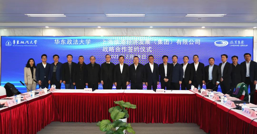 华东政法大学党委书记郭为禄,党委副书记、校长叶青,党委副书记应培礼,临港集团党委书记、董事长袁国华,党委副书记、总裁吕鸣等出席签约仪式。席间,吕鸣总裁及叶青校长代表双方签署协议。