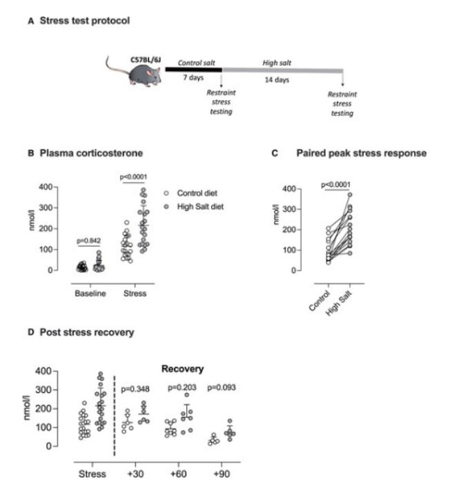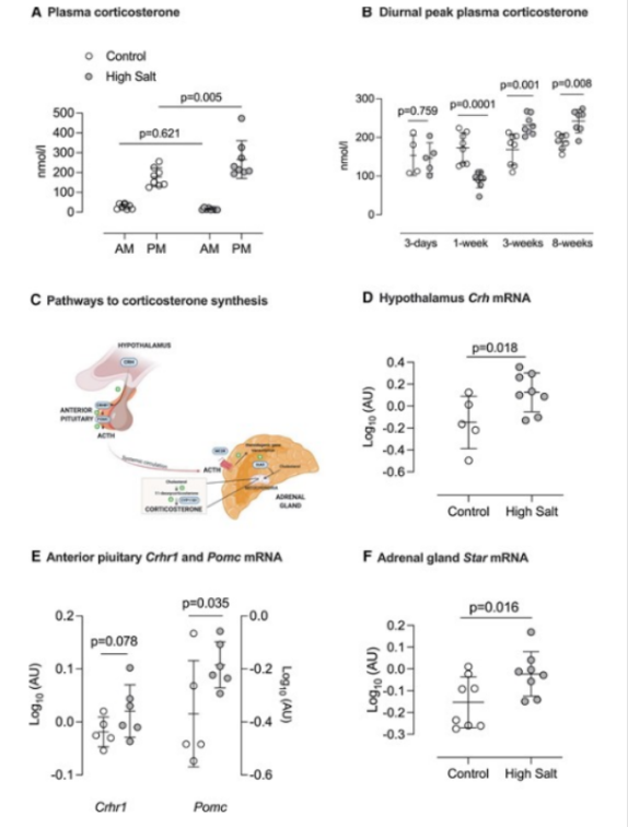 [1] Costello HM, Krilis G, Grenier C, et al. High salt intake activates the hypothalamic-pituitary-adrenal axis, amplifies the stress response, and alters tissue glucocorticoid exposure in mice [published online ahead of print, 2022 Nov 11]. Cardiovasc Res. 2022;cvac160. doi:10.1093/cvr/cvac160