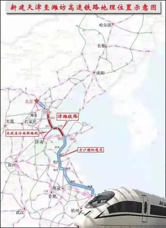 国家发改委在批复中指出,为加快构建京沪高铁辅助通道,完善区域铁路网络,促进沿线经济社会发展,同意新建天津至潍坊高速铁路。