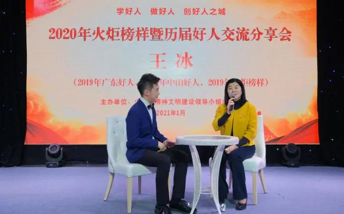 交流分享活动中,火炬区为公安、卫计、教育、志愿者、社区等战线的10名代表授予“火炬榜样”荣誉,并邀请王冰、张延杰、张雯三位好人榜样上台分享了各自的工作经历、榜样事迹和心路历程。