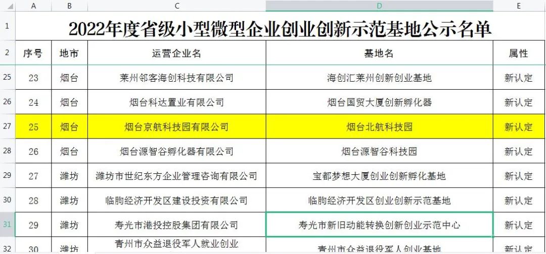 近日,省工信厅公示了“2022年度省级小型微型企业创业创新示范基地名单”,我区创业孵化载体烟台北航科技园名列其中。