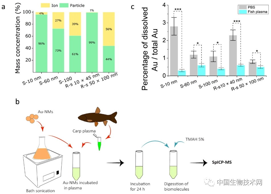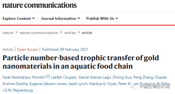 他们追踪了一条从微生物到鱼类的水生食物链上的Au纳米粒子。鱼类是许多国家的主要食物来源。研究人员发现,Au纳米粒子一旦进入生物体内,可以改变其形状和大小以控制附着在藻类上的纳米粒子数量;在水蚤的肠道中存在成团以及溶解的Au纳米粒子,并在鱼组织(肠、肝、鳃和脑)中也发现了依赖于大小和形状的纳米粒子,而且大多数几乎都在鱼脑中。