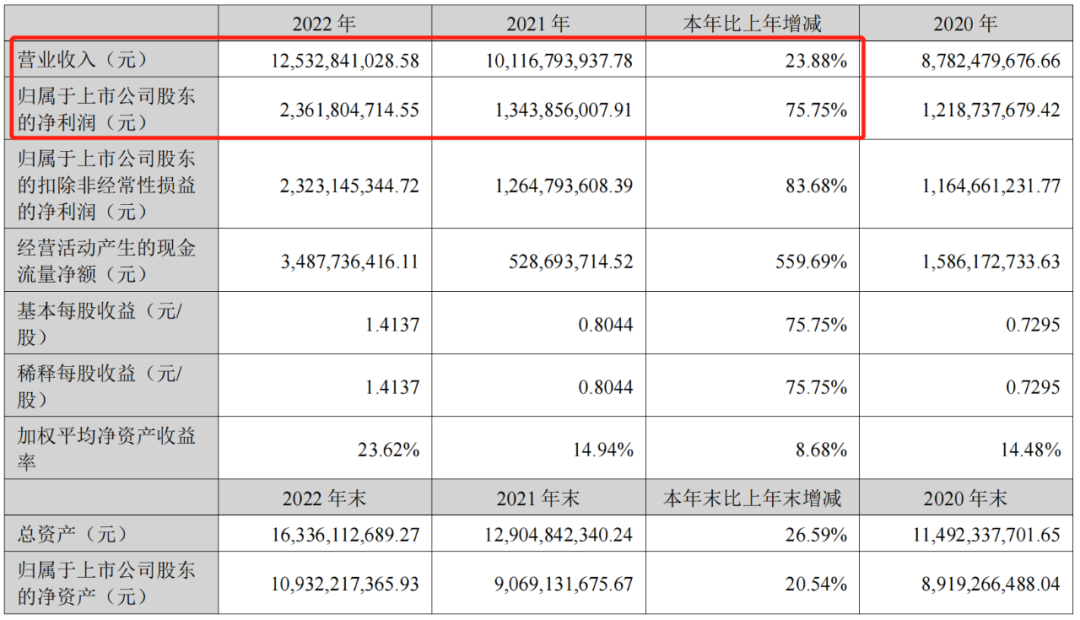 4月25日晚间,以岭药业披露2022年业绩报告,公司去年实现营业收入125.33亿元,同比增长23.88%,创历史新高;归母净利润23.62亿元,也是历史新高,同比增长75.75%。