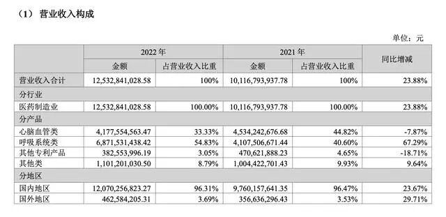 分析产品来看,呼吸系统产品连花清瘟、连花清咳受到市场需求激增的影响实现较快增长,心脑血管等处方药有小幅下滑。其中,呼吸系统类产品实现营业收入68.72亿元,同比增长67.29%;心脑血管类实现营业收入41.78亿元,同比略降7.87%。