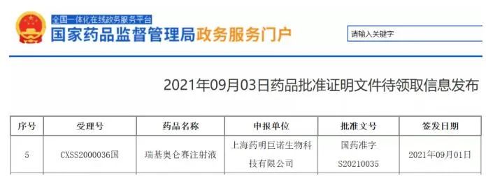 医谷最新消息,国家药监局发布的2021年9月3日药品批准证明文件待领取信息显示,药明巨诺靶向CD19的CAR-T产品瑞基奥仑赛注射液(relma-cel,商品名:倍诺达)已获得批准文号:国药准字S20210035,签发日期为2021年9月1日。这意味着瑞基奥仑赛注射液正式获得国家药监局批准,适应症为:用于治疗经过二线或以上系统性治疗后成人患者的复发或难治性大B细胞淋巴瘤(r/r LBCL)。这是国内第2款获批的CAR-T产品,同时也是全球第6款获批的CAR-T产品。