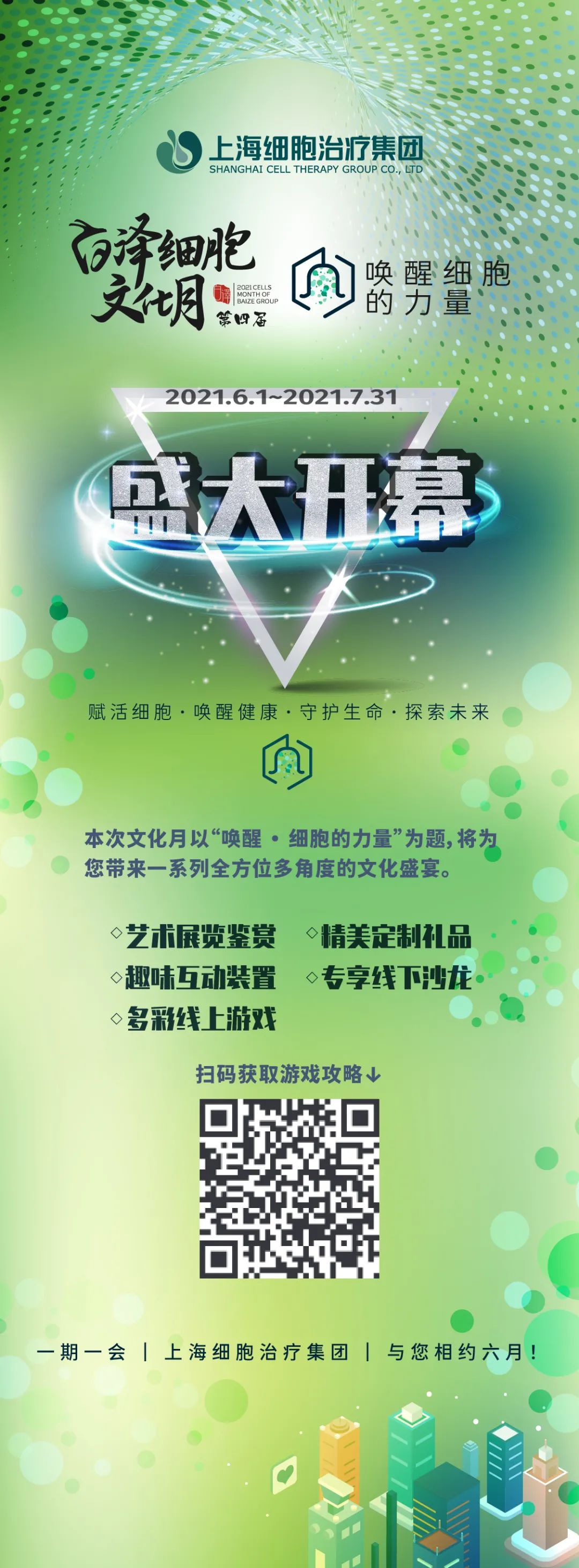 第四届白泽细胞文化月已经开启!进入白泽健享家 小程序参与线上游戏,了解细胞知识,兑换精美礼品。扫描下方二维码可获文化月游戏攻略,快来加入吧!
