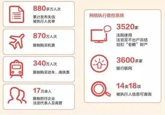失信不仅经商干企业受限制,生活中同样有“门槛”。《关于建立完善守信联合激励和失信联合惩戒制度加快推进社会诚信建设的指导意见》指出,“对有履行能力但拒不履行的严重失信主体实施限制出境和限制购买不动产、乘坐飞机、乘坐高等级列车和席次、旅游度假、入住星级以上宾馆及其他高消费行为等措施。”