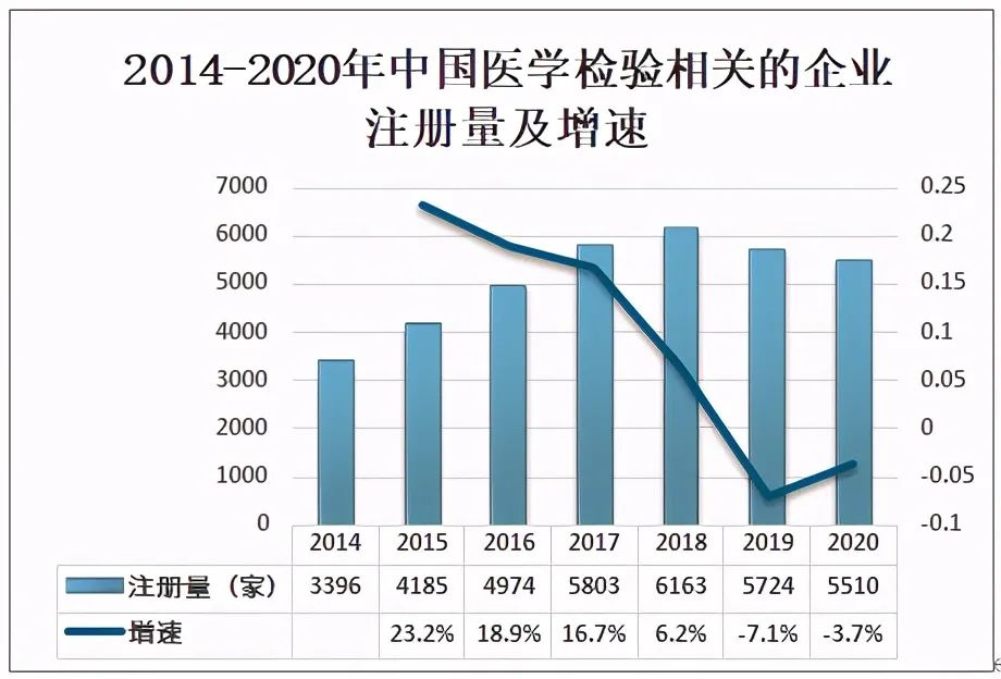 春节返乡新防疫政策的实行,以及接下来核酸检测常态化的趋势,对于医学检验相关的企业来说,提供了新市场。据企查查数据显示,2020年中国医学检验相关的企业注册量为5510家,同比下降3.7%。
