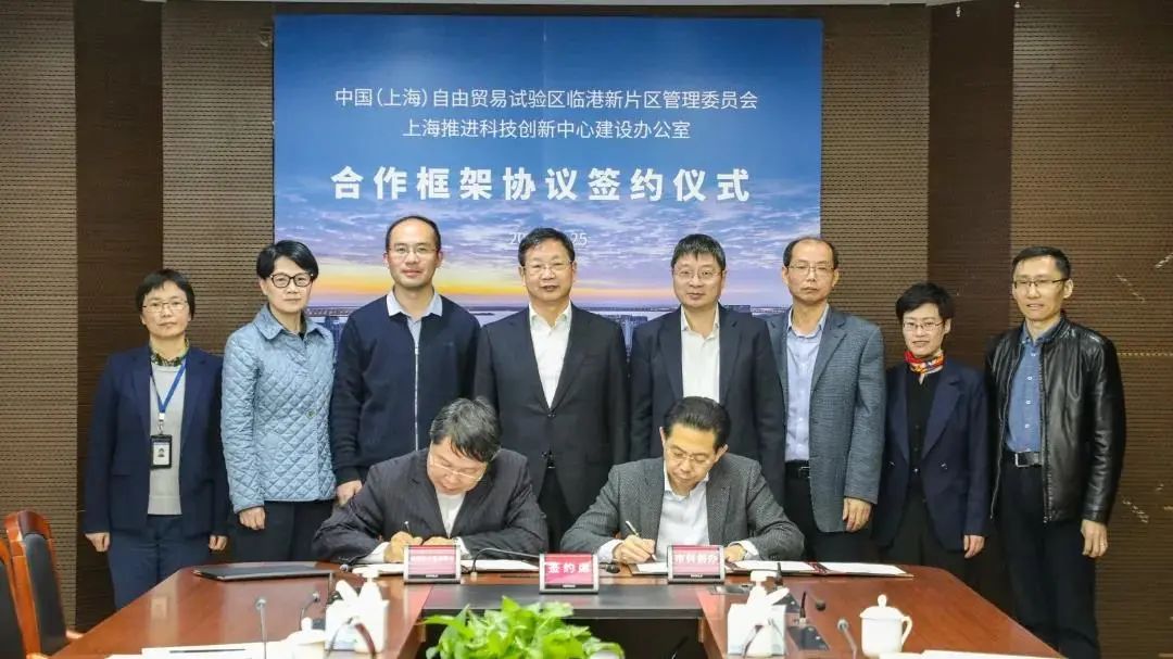 在双方领导见证下,上海推进科技创新中心建设办公室专职副主任、张江高新技术产业开发区管理委员会副主任侯劲与临港新片区党工委委员、专职副主任吴晓华代表各方签署合作框架协议。
