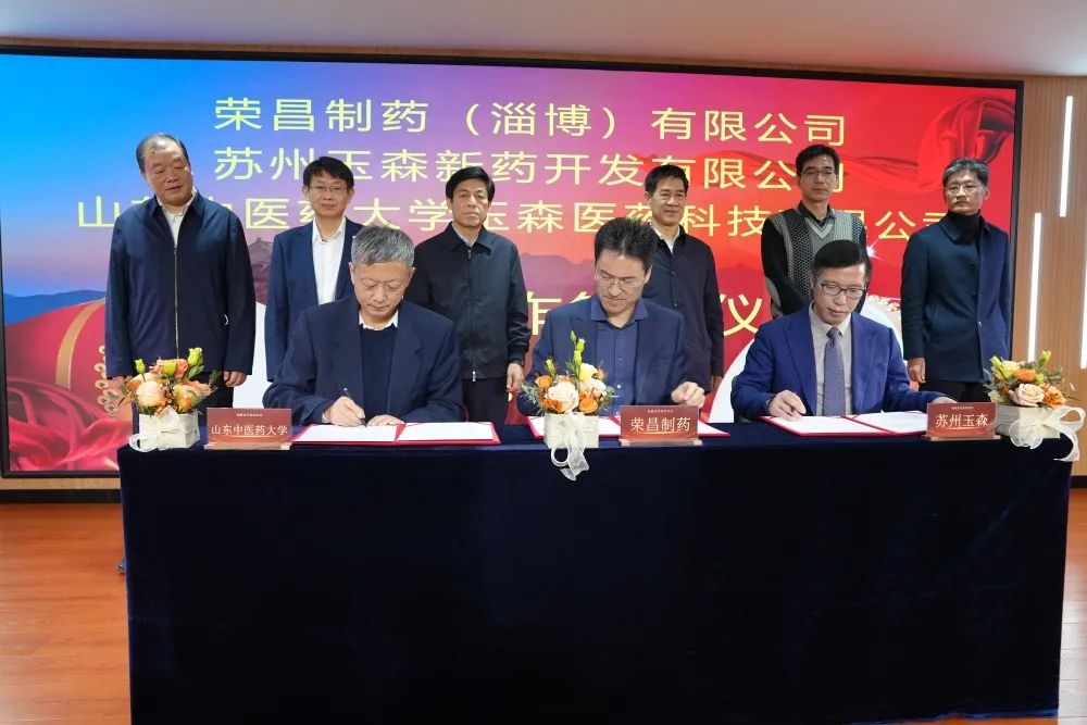 1月4日,荣昌制药(淄博)有限公司、苏州玉森新药开发有限公司、山东中医药大学三方签订战略合作协议,共建淄博市首个中药创新药物研发平台,并依托平台建设首个1.1类中药创新药,形成现代中药产学研一体化发展体系,助力高新区乃至全市新医药产业发展。