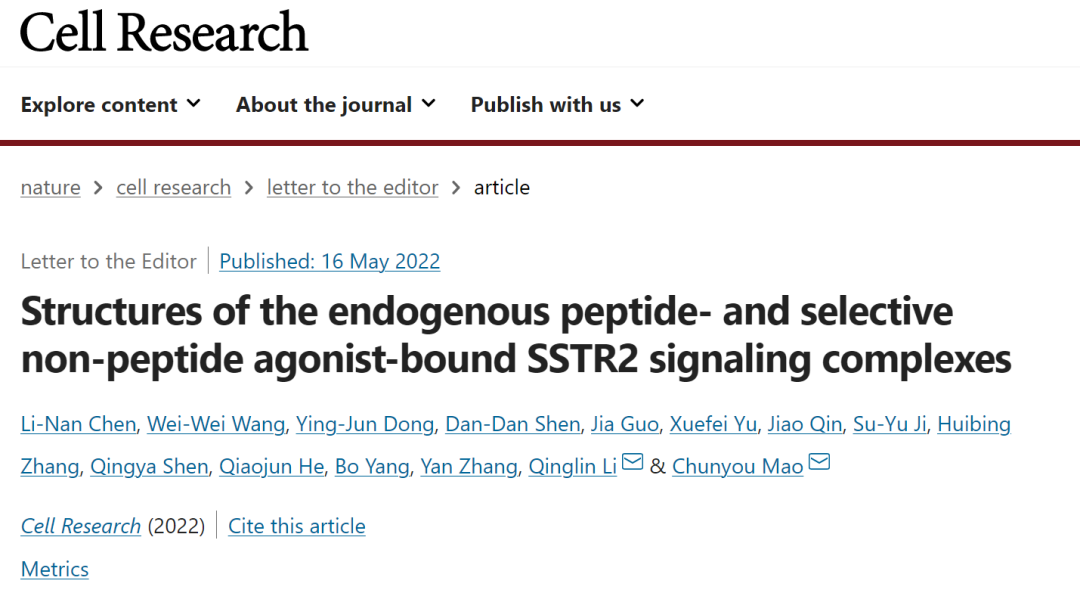 综上所述,本研究阐明了生长抑素受体SSTR2的配体识别、选择性以及下游信号转导机制,研究成果将极大地促进靶向SSTR2的药物发现,尤其是选择性小分子药物的开发。