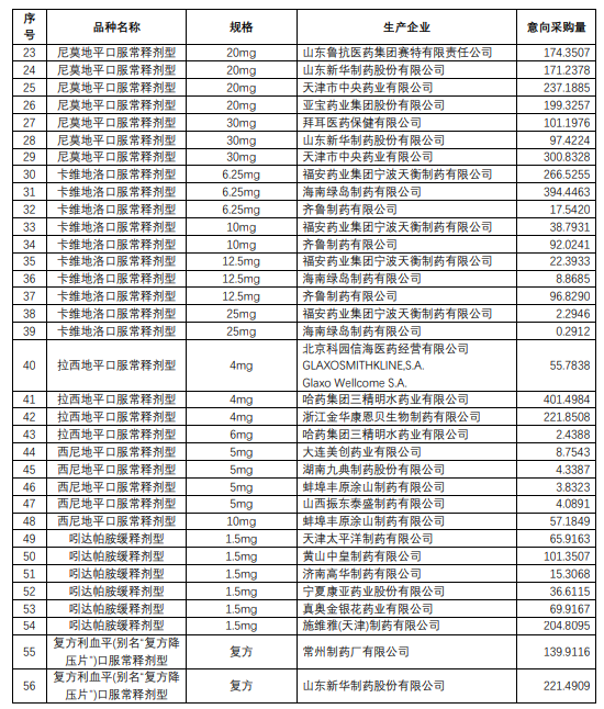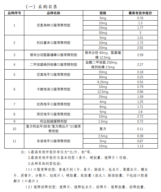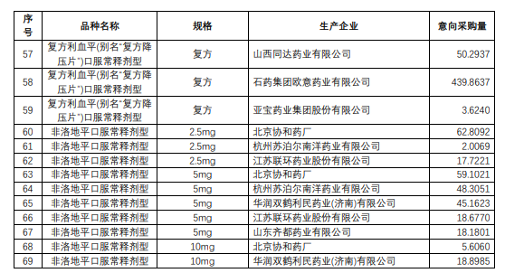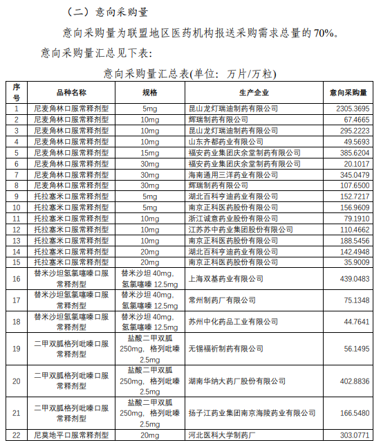 11个品种中包括大量高血压、糖尿病两病用药,且价格相对较低,在采购量方面则与其他省份不同,直接标注了每个品种下对相关企业的意向采购量。