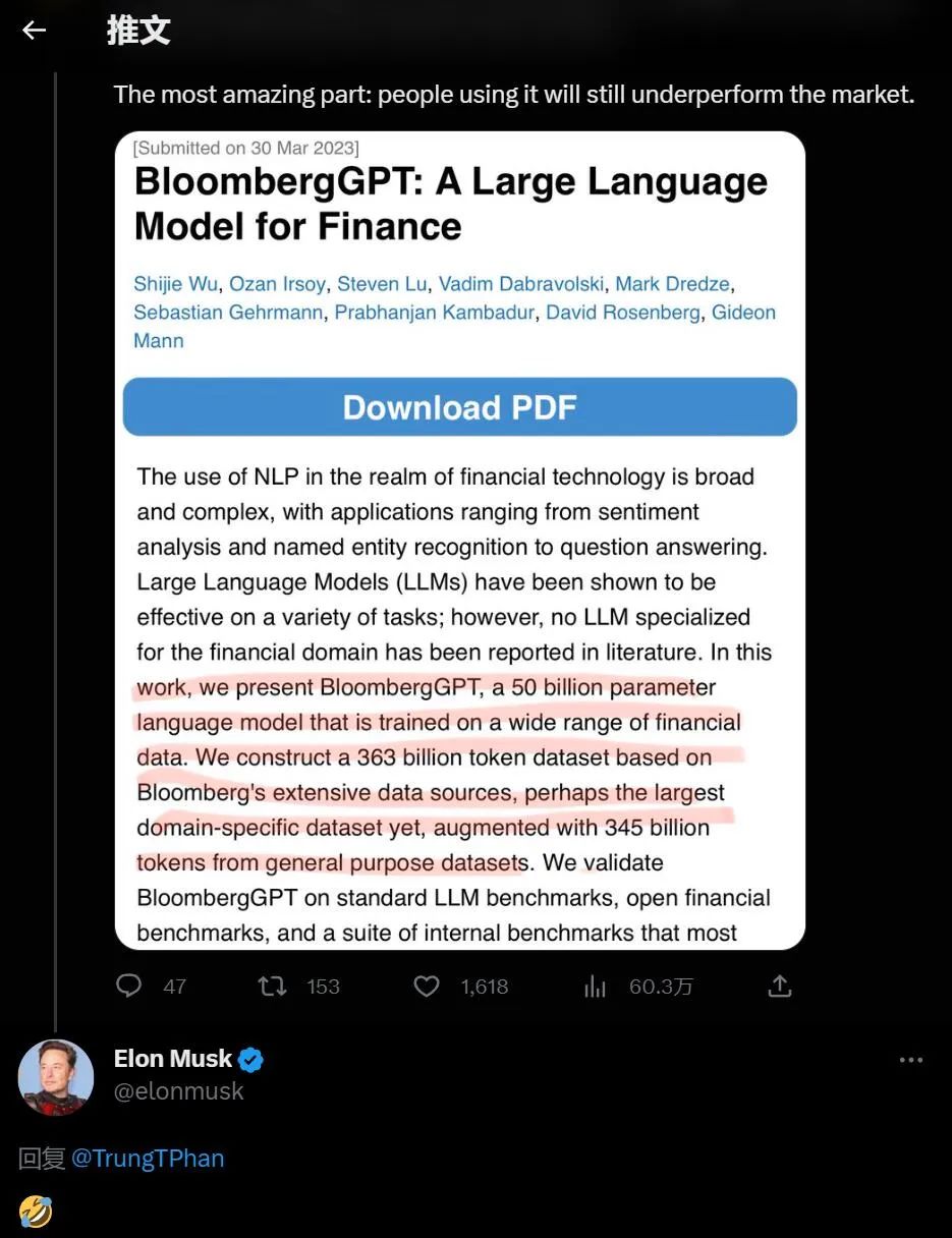 现在,面向金融行业的大语言模型 BloombergGPT 来了!这是一个 500 亿参数的语言模型,支持金融行业的各种任务,并取得了一流的结果。