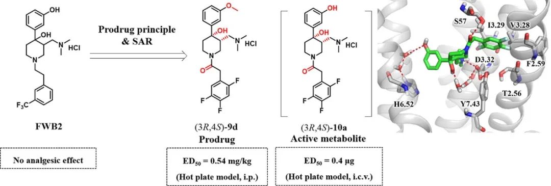 复旦大学药学院付伟课题组与中科院上海药物所刘景根研究组联合研究团队近期在新型MOR选择性激动剂的研究领域取得重要进展。新型MOR激动剂(3R,4S)-9d及其代谢产物10a的发现对于简化经典阿片类药物化学结构、拓展MOR激动剂的结构类型以及发现新的镇痛苗头化合物都具有意义。相关成果以全文形式发表在药物化学领域国际权威期刊Journal of Medicinal Chemistry(原文链接:https://doi.org/10.1021/acs.jmedchem.1c00722)。
