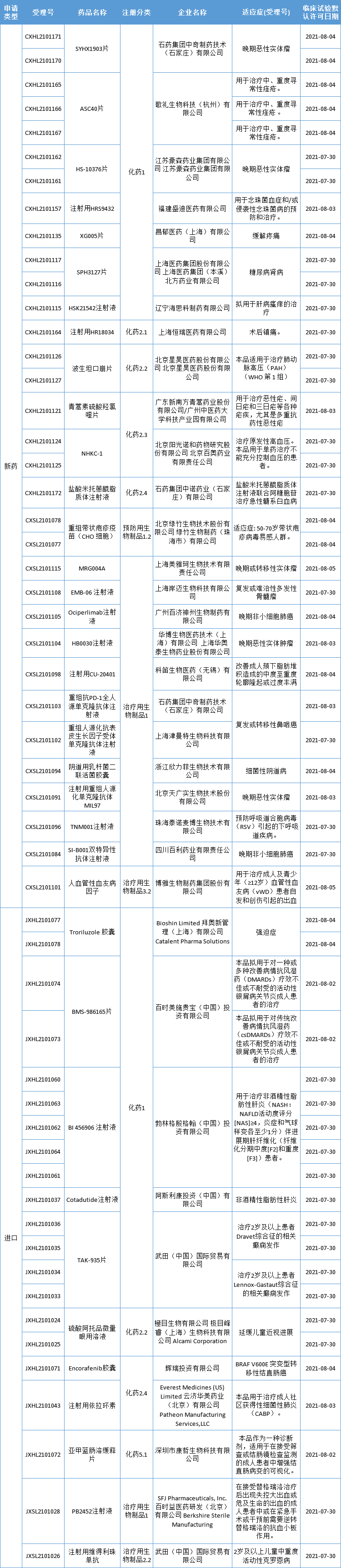 36个新药申请获得临床试验默认许可,包括19个国产1类新药;
