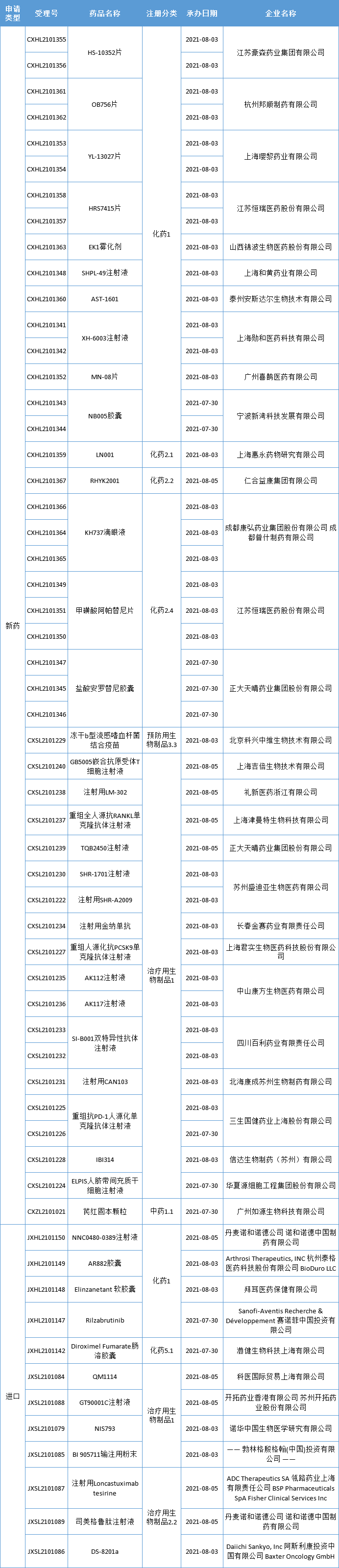 新药临床申请·新受理