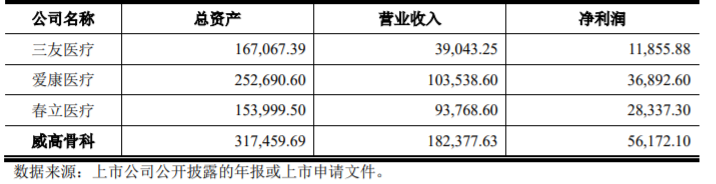 2020年国内骨科耗材企业营收情况,截图自;威高骨科招股书