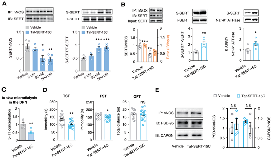 Design of fast-onset antidepressant by dissociating SERT from nNOS in the DRN
