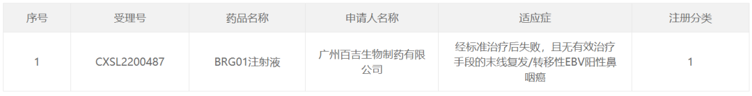 12月14日,中国国家药监局药品审评中心(CDE)官网公示,百吉生物申报的1类新药BRG01注射液获得临床试验默示许可,拟开发适应症为经标准治疗后失败且无有效治疗手段的末线复发/转移性EBV阳性鼻咽癌。根据百吉生物公开资料,BRG01注射液是一款通过基因修饰技术将靶向EB病毒(EBV)抗原的受体表达于T细胞表面而制备成的自体T细胞免疫治疗产品。