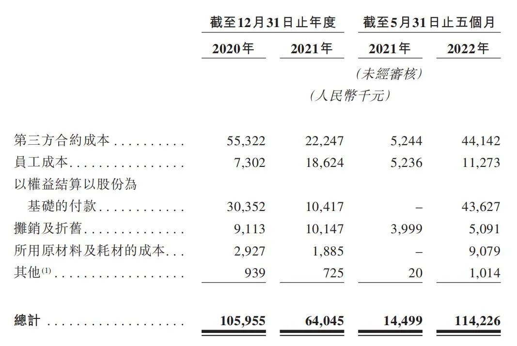 对于亏损原因,真实生物表示,主要用于研发投入、资本开支及销售费用等。2020年、2021年及2022年前5月,真实生物研发支出分别为1.06亿、0.64亿和1.14亿。研发开支主要包括:1)第三方合约成本,包括向CRO、医院及其他医疗机构的付款,及临床前研究及临床试验产生的检验费;2)员工成本,包括研发人员的薪金及福利;3)研发人员以权益结算以股份为基础的付款;4)与无形资产以及研发设备及设施有关的折旧及摊销;5)候选药物研发所用原材料及耗材的成本等。