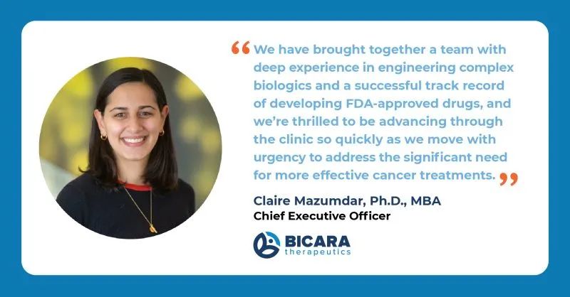 Bicara Therapeutics是一家临床阶段的生物技术公司,致力于开发一流的生物制剂,旨在将靶向治疗的精确度和免疫治疗的力量结合在一起。该公司的双功能抗体旨在将免疫调节有效载荷直接传递至肿瘤微环境,以提高免疫细胞的活性,从而可能提供持久的功效。Bicara的主要资产BCA101是一流的EGFR /TGFβ-trap双功能抗体,目前正在将患者纳入1/2期研究。Bicara经验丰富的团队在免疫学,肿瘤学,临床开发,业务发展和运营策略方面拥有深厚的专业知识。